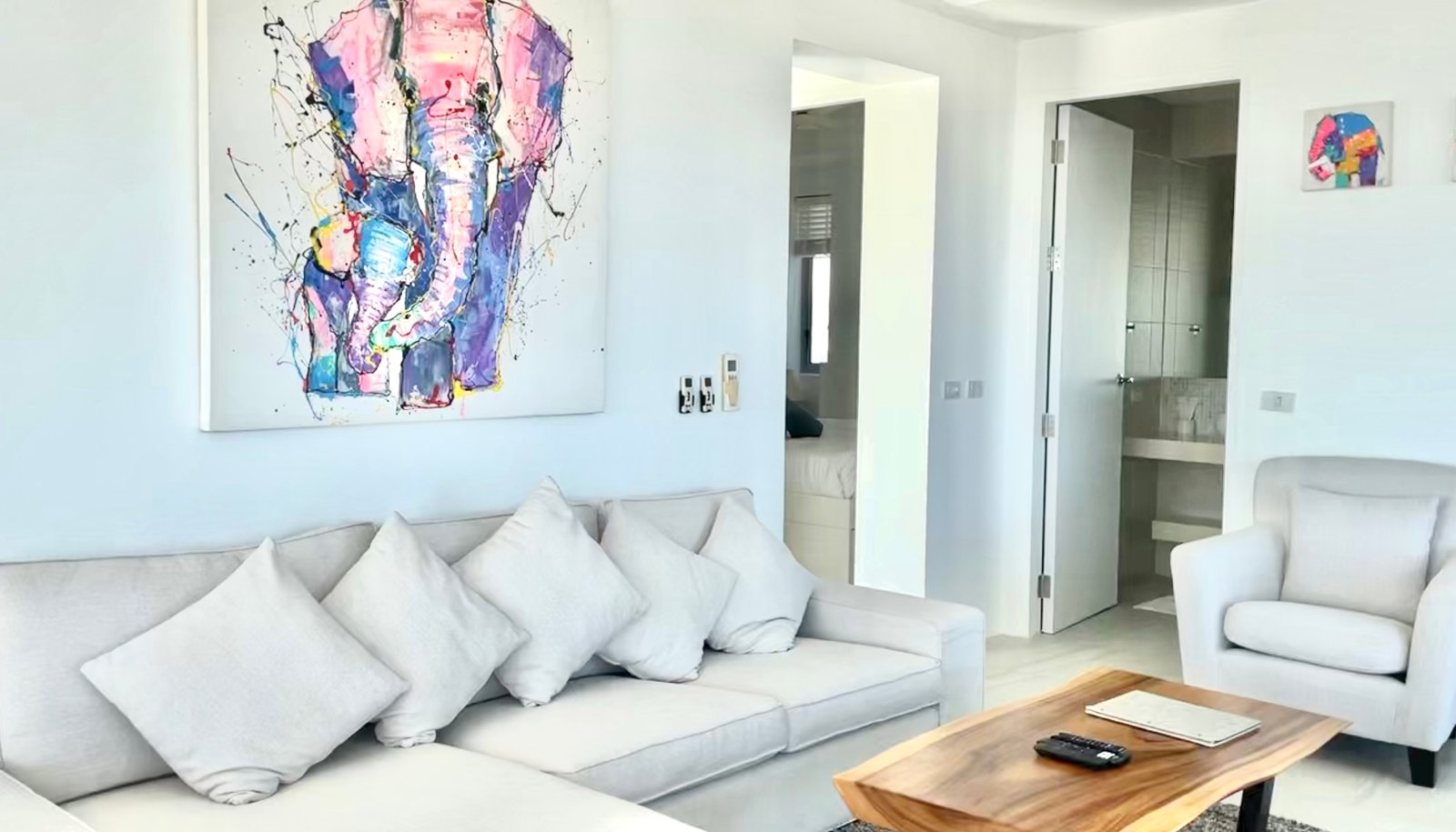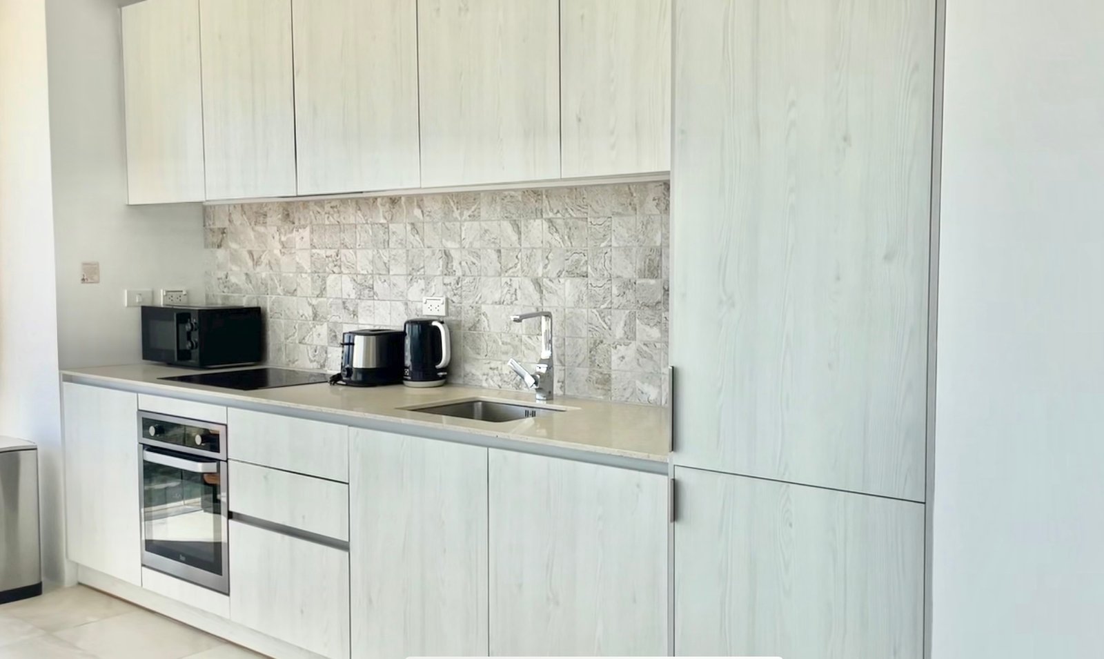 Recently refurbished to a high standard, the apartment offers a fresh, modern, and welcoming atmosphere with new furnishings, updated décor, and quality finishes throughout. Large sliding doors allow natural light and cooling sea breezes to flow through the space, creating a calm and comfortable island home.